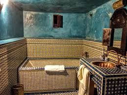 black soap, steam, exfoliation, warm buckets of water, and ghassoul clay.